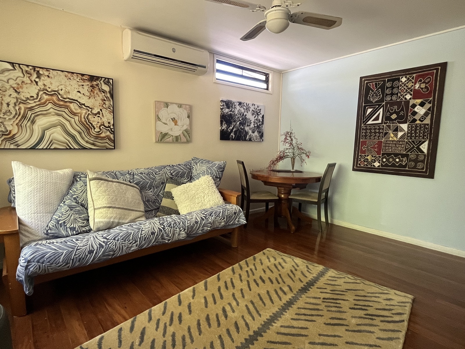 Description: This furnished unit is in a convenient, quiet location. There are polished timber floors throughout the unit, an air conditioner in the lounge/dining room, well appointed kitchen, bedroom with ceiling fan, bathroom with shower and bathtub, the lounge room could be used as a second bedroom as it has a futon. You have your own private front lawn and a small garden area which is easy to care for. This amazing unit is fully furnished, and also includes water usage and electricity usage. Pets considered and have their own courtyard. |